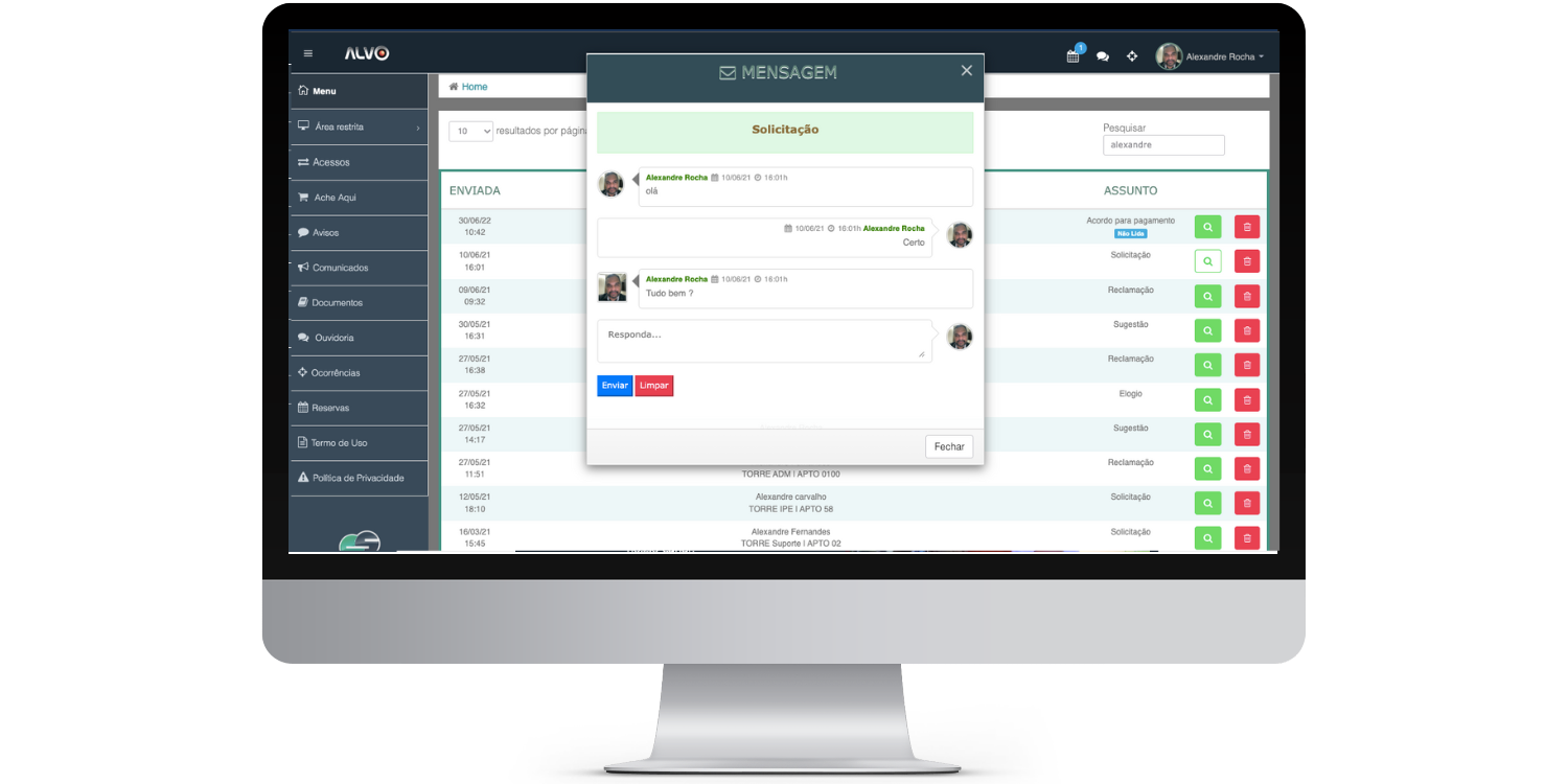 Um canal direto entre o morador e a administração do condomínio.